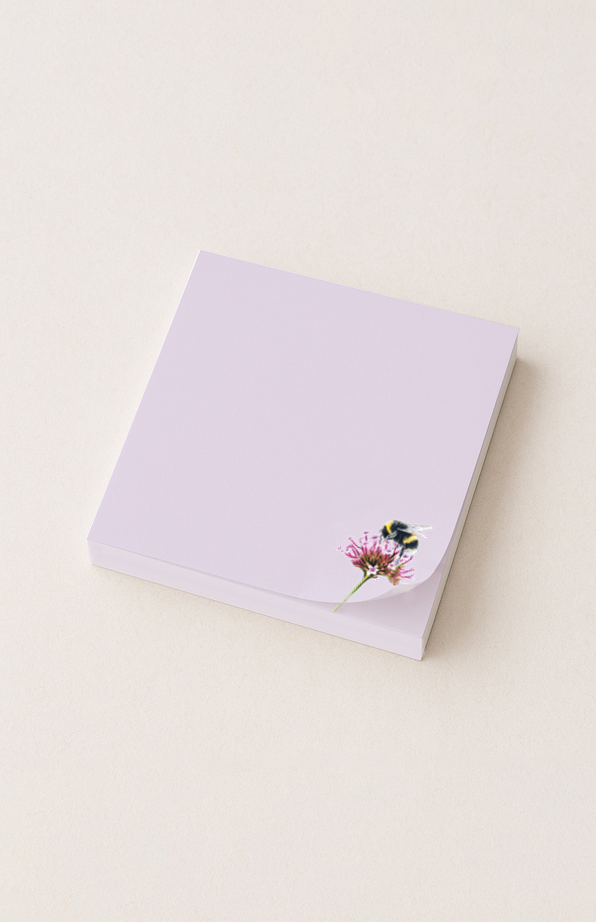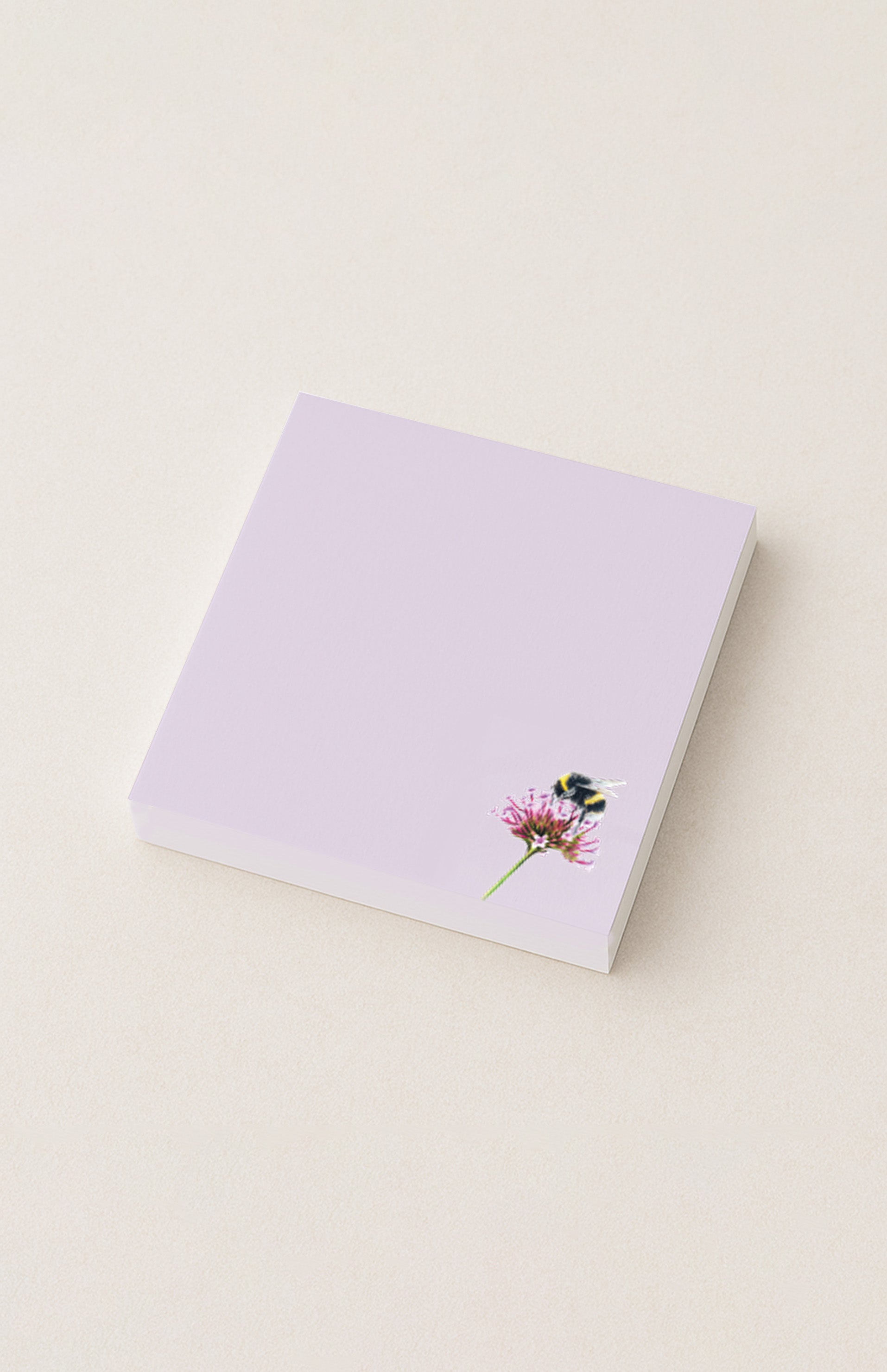 Dieser niedliche Notizzettelblock in einem angenehmen Flieder und der Hummel auf der Blume lassen das Schreiben von Notizen, Einkaufslisten und Briefen noch schöner werden.